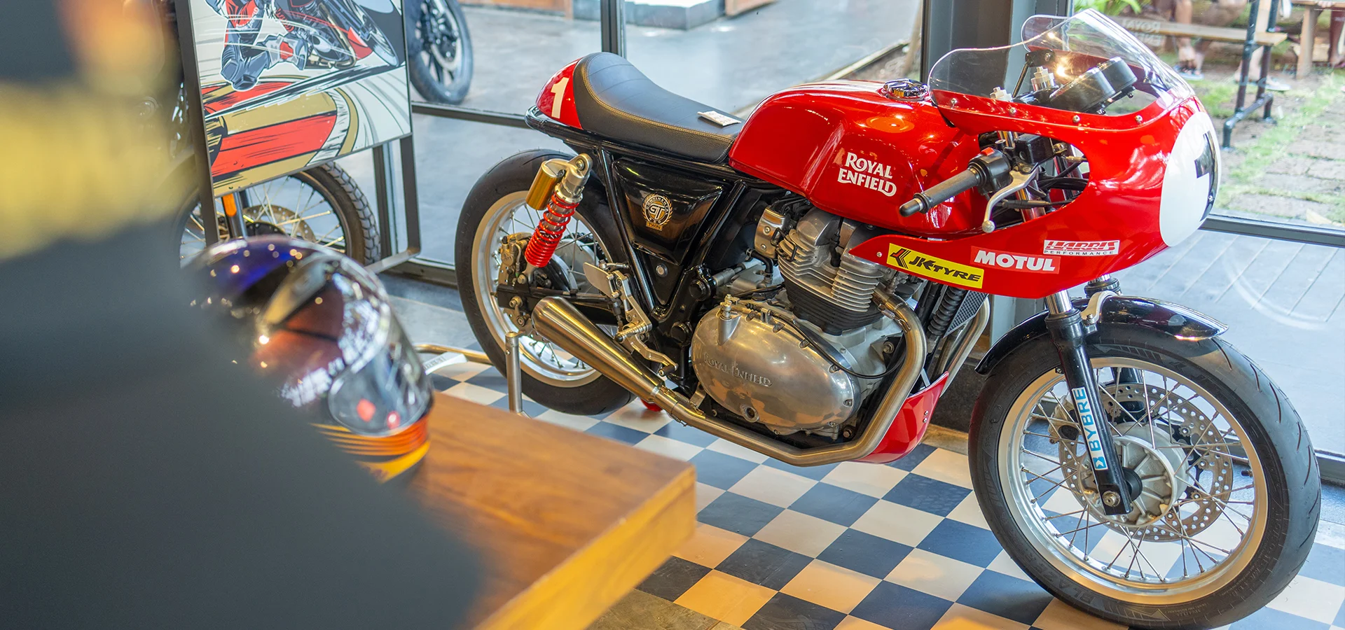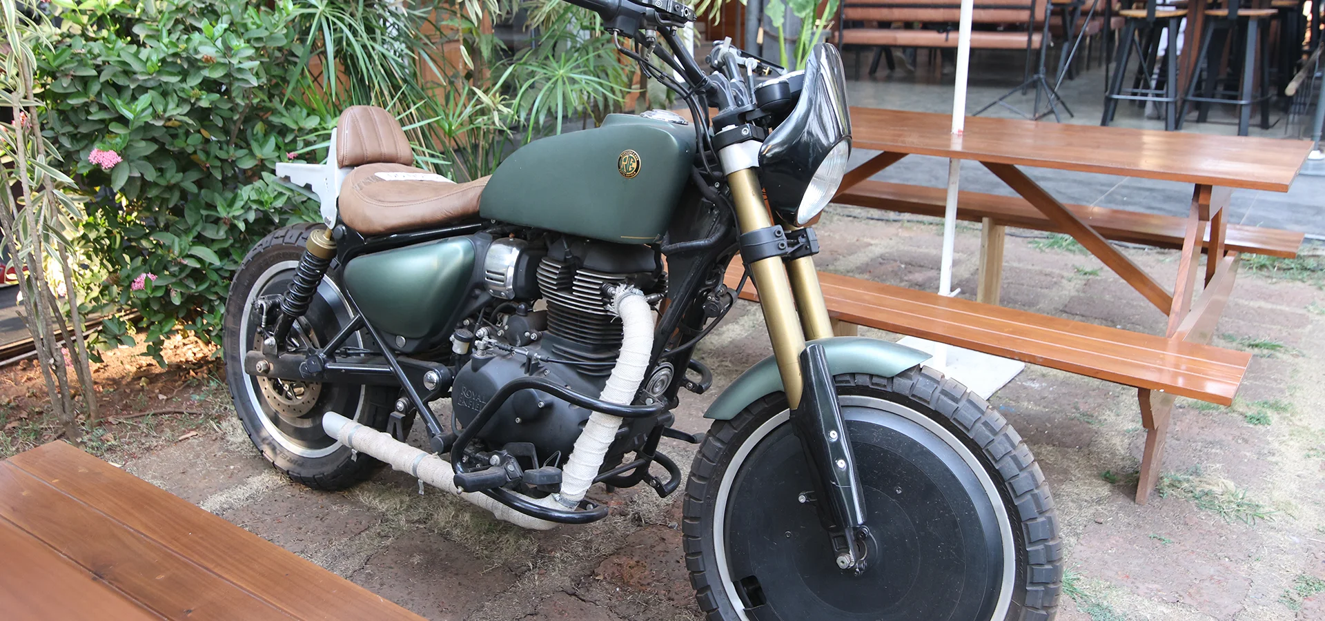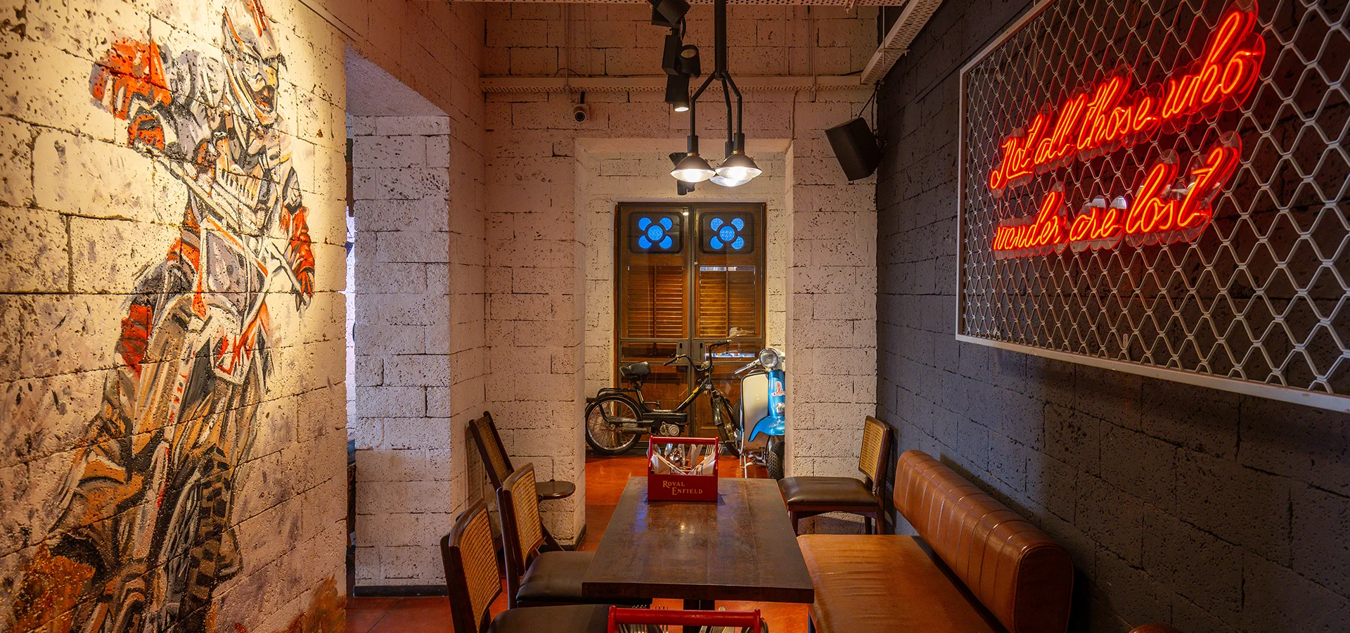 Garage Café, Goa is motorcycling inspired café and bar by Royal Enfield. It is home to Royal Enfield’s vintage motorcycles, art by motorcyclists, signature dishes curated by speciality chefs. Here you find 120 years of motorcycling legacy seamlessly integrating with Goan heritage.